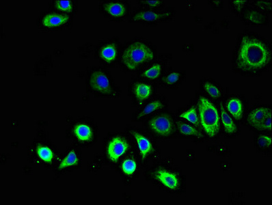 Immunofluorescent analysis of PC-3 cells using CSB-PA741052LA01HU at dilution of 1:100 and Alexa Fluor 488-congugated AffiniPure Goat Anti-Rabbit IgG(H+L)