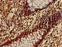 Immunohistochemistry of paraffin-embedded human colon cancer using CSB-PA002290LA01HU at dilution of 1:100