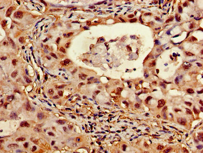 Immunohistochemistry of paraffin-embedded human liver cancer using CSB-PA002355HA01HU at dilution of 1:100