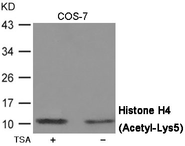 免疫原:Peptide sequence around acetylation site of Lysine 5(S-G-R(p)-G-K) derived from Human Histone H4.