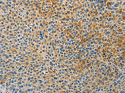 The image on the left is immunohistochemistry of paraffin-embedded Human colon cancer tissue using CSB-PA907155(BAAT Antibody) at dilution 1/30, on the right is treated with fusion protein. (Original magnification: ×200)