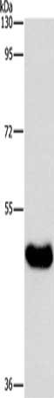 Gel: 8%SDS-PAGE, Lysate: 40 μg, Lane: Human normal liver tissue, Primary antibody: CSB-PA907155(BAAT Antibody) at dilution 1/600, Secondary antibody: Goat anti rabbit IgG at 1/8000 dilution, Exposure time: 10 seconds