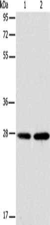 Gel: 12%SDS-PAGE, Lysate: 40 μg, Lane 1-2: A172 cells, 231 cells, Primary antibody: CSB-PA594692(BCAS2 Antibody) at dilution 1/250, Secondary antibody: Goat anti rabbit IgG at 1/8000 dilution, Exposure time: 20 seconds