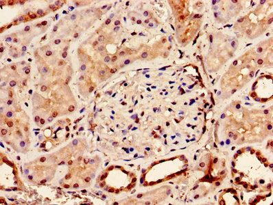 • Immunohistochemistry of paraffin-embedded human kidney tissue using CSB-PA05805A0Rb at dilution of 1:100