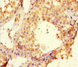 Immunohistochemistry of paraffin-embedded human testis tissue using CSB-PA883443LA01HU at dilution of 1:100