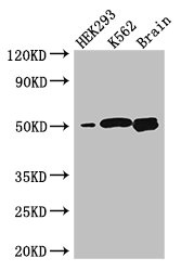 Positive WB detected in: HEK293 whole cell lysate, K562 whole cell lysate, Mouse brain tissue