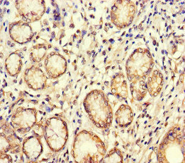 • Immunohistochemistry of paraffin-embedded human gastric cancer using CSB-PA002882LA01HU at dilution of 1:100