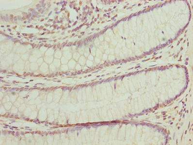 Immunohistochemistry of paraffin-embedded human colon cancer using CSB-PA01749A0Rb at dilution of 1:100