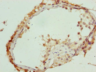 Immunohistochemistry of paraffin-embedded human testis tissue using CSB-PA771458LA01HU at dilution of 1:100