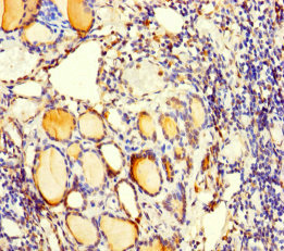 Immunohistochemistry of paraffin-embedded human thyroid tissue using CSB-PA004030LA01HU at dilution of 1:100