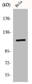 • Western Blot analysis of HeLa cells using CARD 6 Polyclonal Antibody