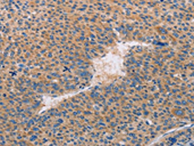 • The image on the left is immunohistochemistry of paraffin-embedded Human liver cancer tissue using CSB-PA209503(CASP10 Antibody) at dilution 1/30, on the right is treated with fusion protein. (Original magnification: ×200)