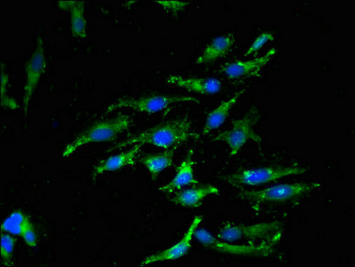 • Immunofluorescent analysis of Hela cells using CSB-PA747641LA01HU at dilution of 1:100 and Alexa Fluor 488-congugated AffiniPure Goat Anti-Rabbit IgG(H+L)