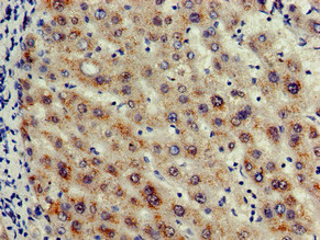 • Immunohistochemistry of paraffin-embedded human liver tissue using CSB-PA747641LA01HU at dilution of 1:100