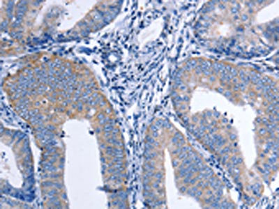 • The image on the left is immunohistochemistry of paraffin-embedded Human cervical cancer tissue using CSB-PA163077(CCL26 Antibody) at dilution 1/20, on the right is treated with synthetic peptide. (Original magnification: ×200)