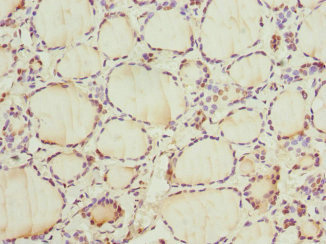 • Immunohistochemistry of paraffin-embedded human thyroid tissue using CSB-PA004818ESR1HU at dilution of 1:100