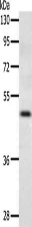 Gel: 10%SDS-PAGE, Lysate: 40 μg, Lane: SKOV3 cells, Primary antibody: CSB-PA262645(CCR3 Antibody) at dilution 1/300, Secondary antibody: Goat anti rabbit IgG at 1/8000 dilution, Exposure time: 90 seconds