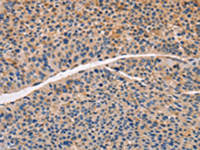 The image on the left is immunohistochemistry of paraffin-embedded Human liver cancer tissue using CSB-PA265884(CCR5 Antibody) at dilution 1/20, on the right is treated with synthetic peptide. (Original magnification: ×200)