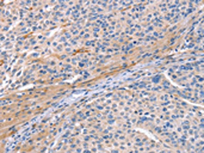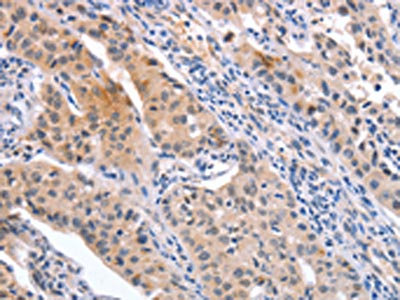 • The image on the left is immunohistochemistry of paraffin-embedded Human lung cancer tissue using CSB-PA569443(CD59 Antibody) at dilution 1/30, on the right is treated with synthetic peptide. (Original magnification: ×200)