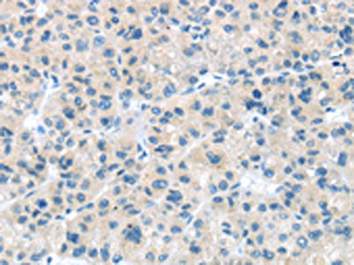 • The image on the left is immunohistochemistry of paraffin-embedded Human liver cancer tissue using CSB-PA259468(CD63 Antibody) at dilution 1/25, on the right is treated with synthetic peptide. (Original magnification: ×200)
