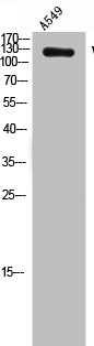 • Western Blot analysis of A549 using VE-Cadherin Polyclonal Antibody.
