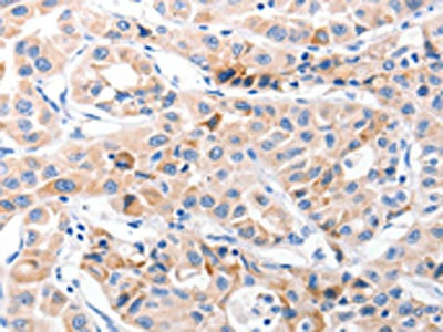 The image on the left is immunohistochemistry of paraffin-embedded Human lung cancer tissue using CSB-PA440881(CDK7 Antibody) at dilution 1/30, on the right is treated with fusion protein. (Original magnification: ×200)