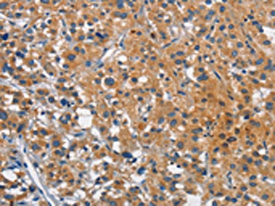 • The image on the left is immunohistochemistry of paraffin-embedded Human liver cancer tissue using CSB-PA815431(CEACAM1 Antibody) at dilution 1/25, on the right is treated with synthetic peptide. (Original magnification: ×200)