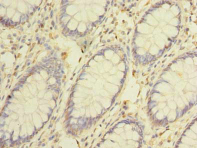 Immunohistochemistry of paraffin-embedded human colon cancer using CSB-PA855035LA01HU at dilution of 1:100