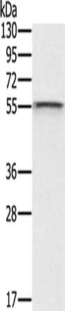 • Gel: 8%SDS-PAGE, Lysate: 40 μg, Lane: Mouse heart tissue, Primary antibody: CSB-PA877207(CFLAR Antibody) at dilution 1/200, Secondary antibody: Goat anti rabbit IgG at 1/8000 dilution, Exposure time: 4 minutes