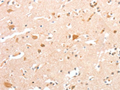 The image on the left is immunohistochemistry of paraffin-embedded Human brain tissue using CSB-PA087998(CIDEC Antibody) at dilution 1/30, on the right is treated with fusion protein. (Original magnification: ×200)