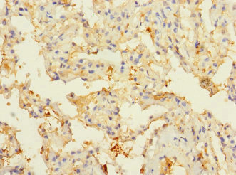 Immunohistochemistry of paraffin-embedded human lung tissue using CSB-PA773051DSR1HU at dilution of 1:100