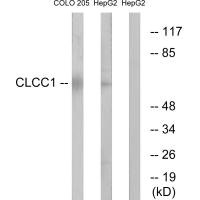 • Western blot analysis of extracts from COLO cells and HepG2 cells, using CLCC1 antibody.