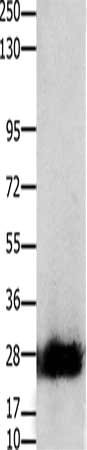 • Gel: 10%SDS-PAGE, Lysate: 30 μg, Lane: Mouse pancreas tissue, Primary antibody: CSB-PA669859(CLDN14 Antibody) at dilution 1/200, Secondary antibody: Goat anti rabbit IgG at 1/8000 dilution, Exposure time: 50 seconds