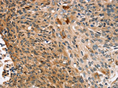 • The image on the left is immunohistochemistry of paraffin-embedded Human esophagus cancer tissue using CSB-PA972227(CNGA1 Antibody) at dilution 1/25, on the right is treated with synthetic peptide. (Original magnification: ×200)