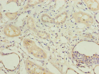 Immunohistochemistry of paraffin-embedded human kidney tissue using CSB-PA706643LA01HU at dilution of 1:100