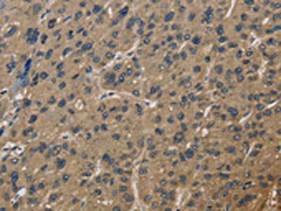 The image is immunohistochemistry of paraffin-embedded Human liver cancer tissue using CSB-PA581290(CORO1C Antibody) at dilution 1/60. (Original magnification: ×200)