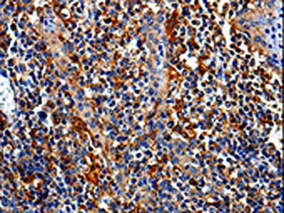 The image is immunohistochemistry of paraffin-embedded Human tonsil tissue using CSB-PA679990(COX16 Antibody) at dilution 1/50. (Original magnification: ×200)