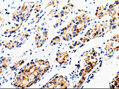 The image is immunohistochemistry of paraffin-embedded Human liver cancer tissue using CSB-PA241484(COX16 Antibody) at dilution 1/50. (Original magnification: ×200)