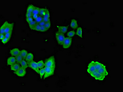 • Immunofluorescent analysis of PC-3 cells using CSB-PA005884LA01HU at dilution of 1:100 and Alexa Fluor 488-congugated AffiniPure Goat Anti-Rabbit IgG(H+L)