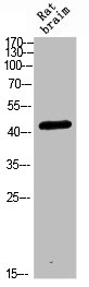 • Western blot analysis of RAT-BRAIN Cell Lysate, antibody was diluted at 1:1000. Secondary antibody was diluted at 1:20000