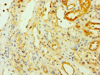 • Immunohistochemistry of paraffin-embedded human kidney tissue using CSB-PA839816ESR2HU at dilution of 1:100