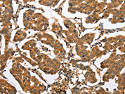 • The image on the left is immunohistochemistry of paraffin-embedded Human breast cancer tissue using CSB-PA568771(CXCL14 Antibody) at dilution 1/60, on the right is treated with fusion protein. (Original magnification: ×200)