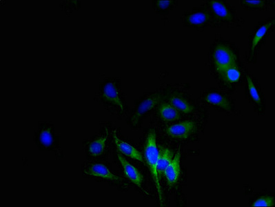 • Immunofluorescent analysis of Hela cells using CSB-PA006325LA01HU at dilution of 1:100 and Alexa Fluor 488-congugated AffiniPure Goat Anti-Rabbit IgG(H+L)