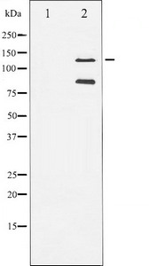 • Western blot analysis of extracts from A549 cells,The lane on the left is treated with the antigen-specific peptide.