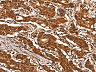 The image on the left is immunohistochemistry of paraffin-embedded Human gastic cancer tissue using CSB-PA572968(DDX4 Antibody) at dilution 1/25, on the right is treated with synthetic peptide. (Original magnification: ×200)