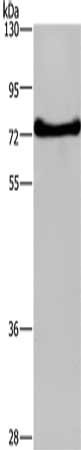 Gel: 8%SDS-PAGE, Lysate: 40 μg, Lane: HepG2 cells, Primary antibody: CSB-PA295249(DDX43 Antibody) at dilution 1/200, Secondary antibody: Goat anti rabbit IgG at 1/8000 dilution, Exposure time: 3 minutes