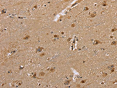 The image on the left is immunohistochemistry of paraffin-embedded Human brain tissue using CSB-PA324006(DLD Antibody) at dilution 1/35, on the right is treated with fusion protein. (Original magnification: ×200)