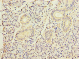 Immunohistochemistry of paraffin-embedded human pancreatic tissue using CSB-PA10929A0Rb at dilution of 1:100