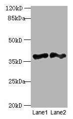 Observed band size: 38 kDa -