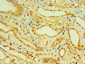 Immunohistochemistry of paraffin-embedded human kidney tissue using CSB-PA683815ESR1HU at dilution of 1:100